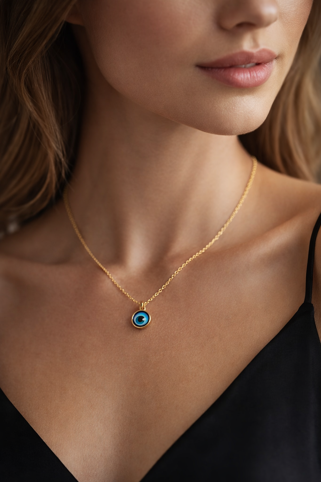 Athena Evil Eye Necklace, a refined 18K gold plated stainless steel necklace designed for protection, elegance, and effortless everyday wear.